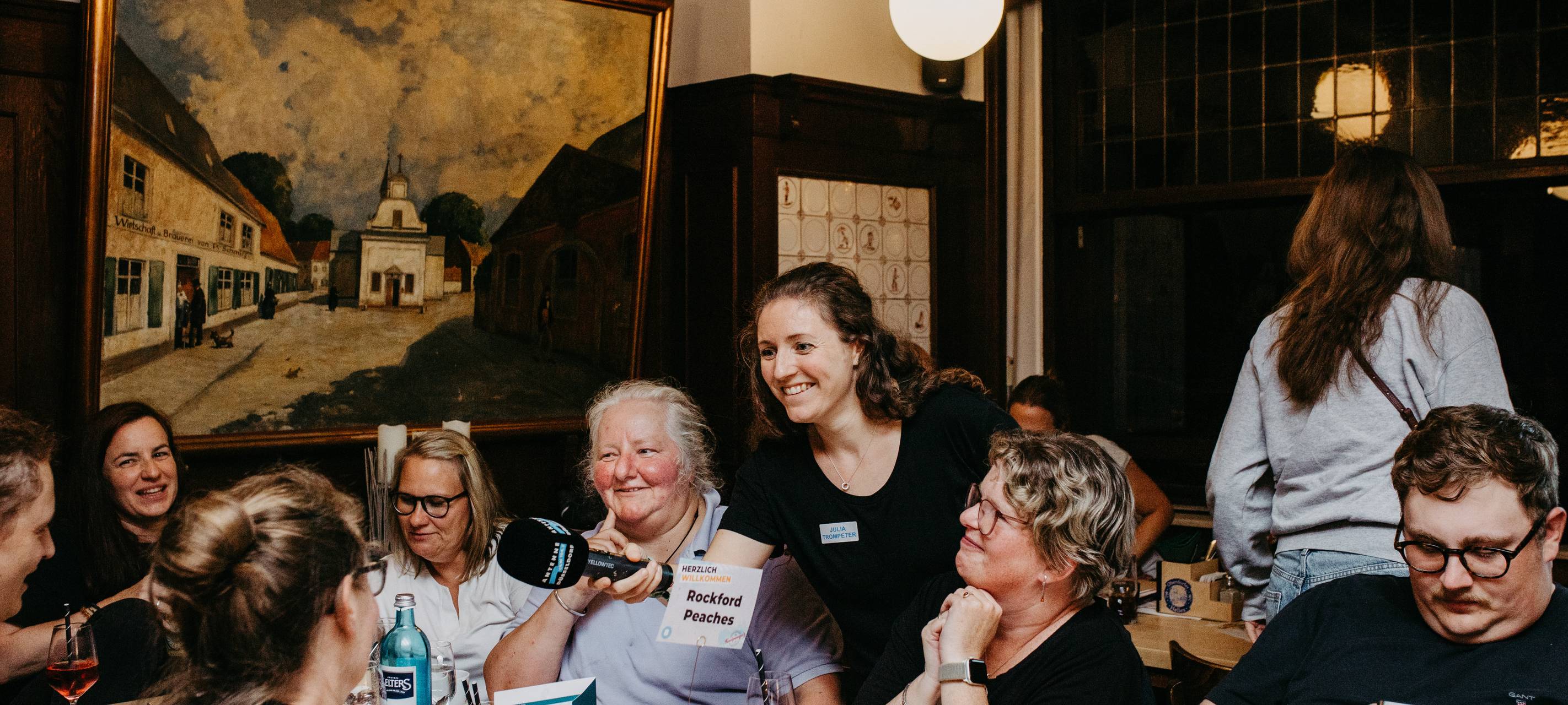 "Es ist einfach so schön zu sehen, wie viele verschiedene Menschen am Kneipenquiz-Abend zusammenkommen, um gemeinsam zu rätseln, zu lachen, zu schunkeln, zu singen und einfach eine tolle Zeit miteinander zu verbringen. Ich bin dankbar, dass ich ein Teil davon sein darf."