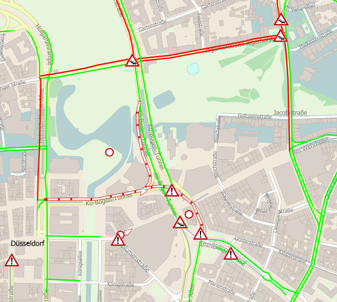 Die Sperrung des Tunnels wirkt sich auch deutlich im Berufsverkehr aus. Viele umliegende Straße sind deutlich voller. Das betrifft aktuell die Fischerstraße, die Kaiserstraße, die Jägerhofstraße, die Maximilian-Wehye-Allee und die Heinrich-Heine-Alle.