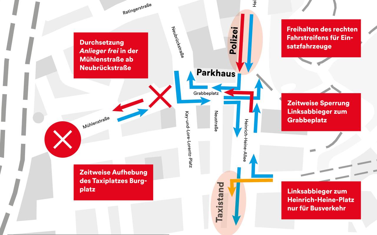 Übersichtskarte: Sperrungen rund um die Heinrich-Heine-Allee