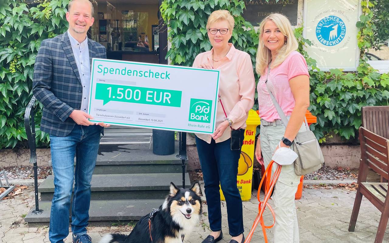 Antenne Düsseldorf Chefredakteur Christian Zeelen, Nala und ich haben der Leiterin des Tierheims Monika Piasetzky einen Scheck übergeben. Wie es dazu kam, hört Ihr hier: