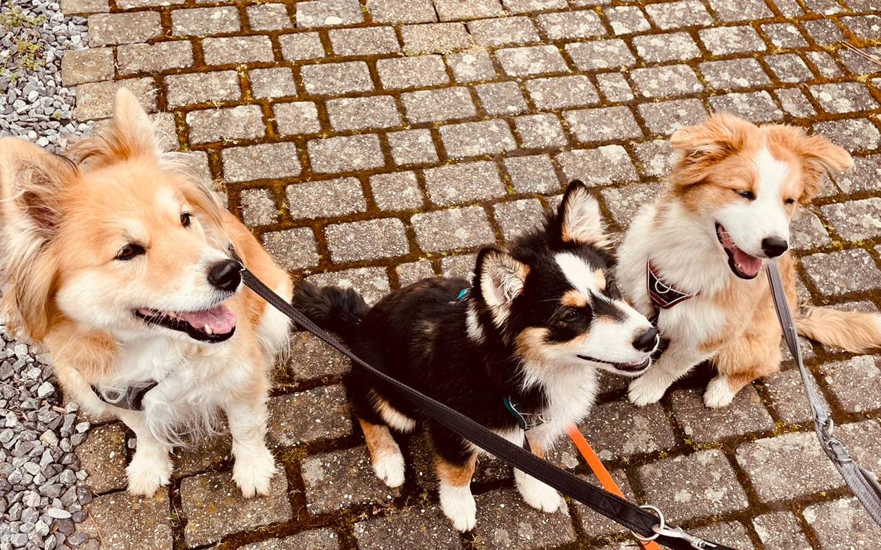 Ich habe mit Nala ihre Hunde Familie in Köln besucht. Knapp 10 Wochen ist es her, dass ich sie dort abgeholt habe. Jetzt also das Wiedersehen und es war sooo schön. Vor allem die beiden Geschwister hatten unglaublich viel Spaß miteinander, sind herumgetollt wie die Wilden, so dass wir sie zwischendurch mal an die kurze Leine zum beruhigen nehmen mussten.