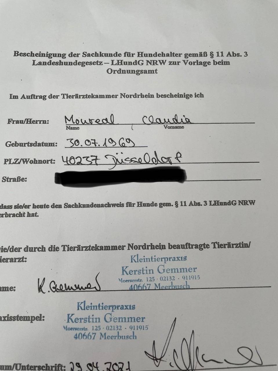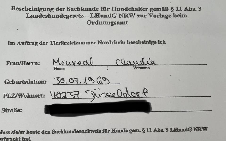 Ich habe jetzt quasi den Hunde Führerschein bestanden. Da Nala circa 40 cm groß und 20 Kilo schwer wird, hatten wir Post von der Stadt Düsseldorf bekommen. Darin die Aufforderung eben den Nachweis dieser bestandenen „Sachkunde- Prüfung“ sowie ein Beleg der abgeschlossenen Haftpflicht Versicherung vorzulegen. Ansonsten drohe eine Ordnung Strafe… Das wollen wir natürlich nicht und so habe ich mir auf der Seite der Tier Ärztekammer Nordrhein 36 Fragebögen heruntergeladen.
