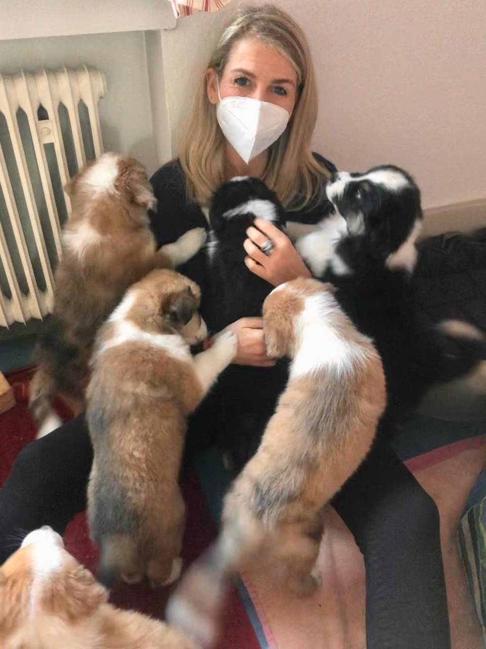 Als ich in den Raum kam und mich hingesetzt habe, stürmten direkt alle Welpen auf mich zu – aber ganz vorne weg unsere Hündin. Und sie war ganz anhänglich und verschmust. Noch zehn Tage, dann werden wir sie nach Hause holen. Der Countdown läuft…
