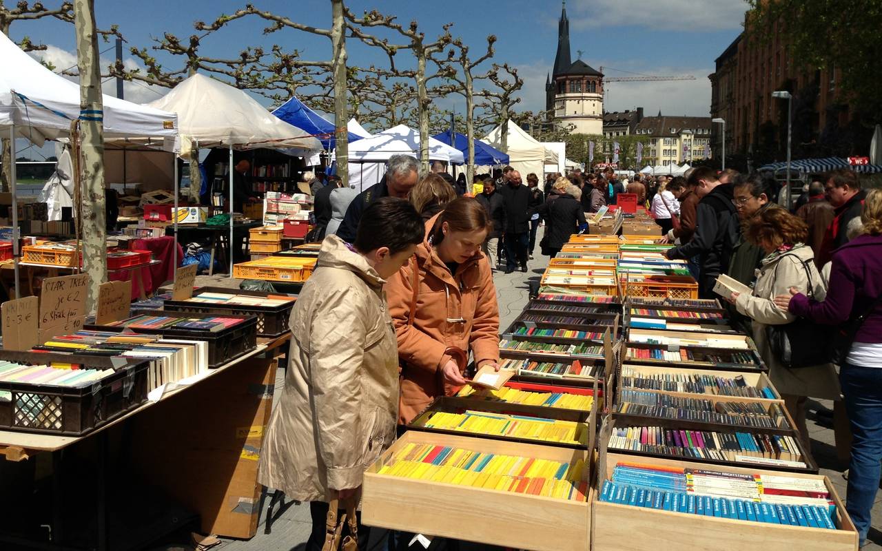Außerdem gibt es dieses Wochenende an beiden Tagen auch wieder die Büchermeile an der Rheinuferpromenade. Dort kann ebenfalls ab 11 Uhr gestöbert werden.