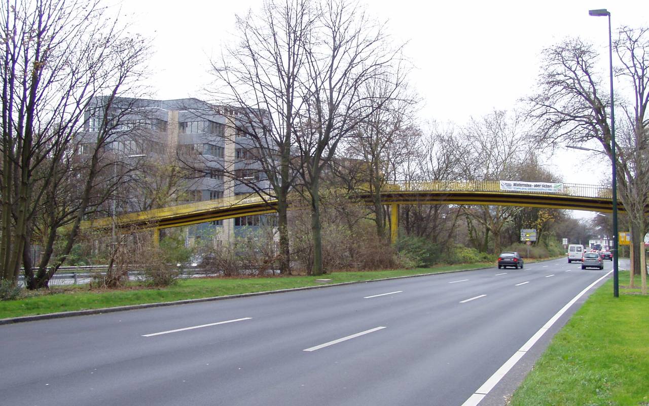 Die Fußgängerbrücke über den Kennedydamm wird abgerissen. Ende Juli wird die Straße deswegen ein Wochenende lang gesperrt. Das Bauwerk sei nicht mehr zu sanieren, so die Stadt. Eine neue Brücke ist zumindest in Planung.