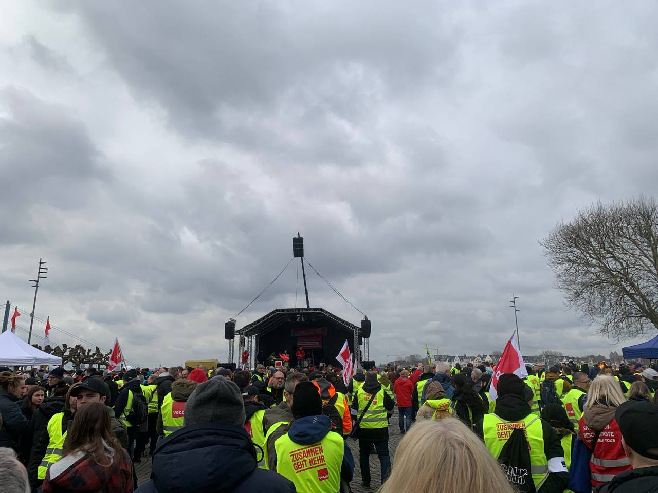 Um 10 Uhr startet ein Demonstrationszug vom DGB-Haus in der Friedrich-Ebert-Straße zum Burgplatz. Dort findet ab 11 Uhr eine Kundgebung mit bis zu 4.000 Streikenden statt. Teilnehmer kommen aus allen Bereichen des öffentlichen Dienstes von Bund und Kommunen in Düsseldorf und Umgebung.