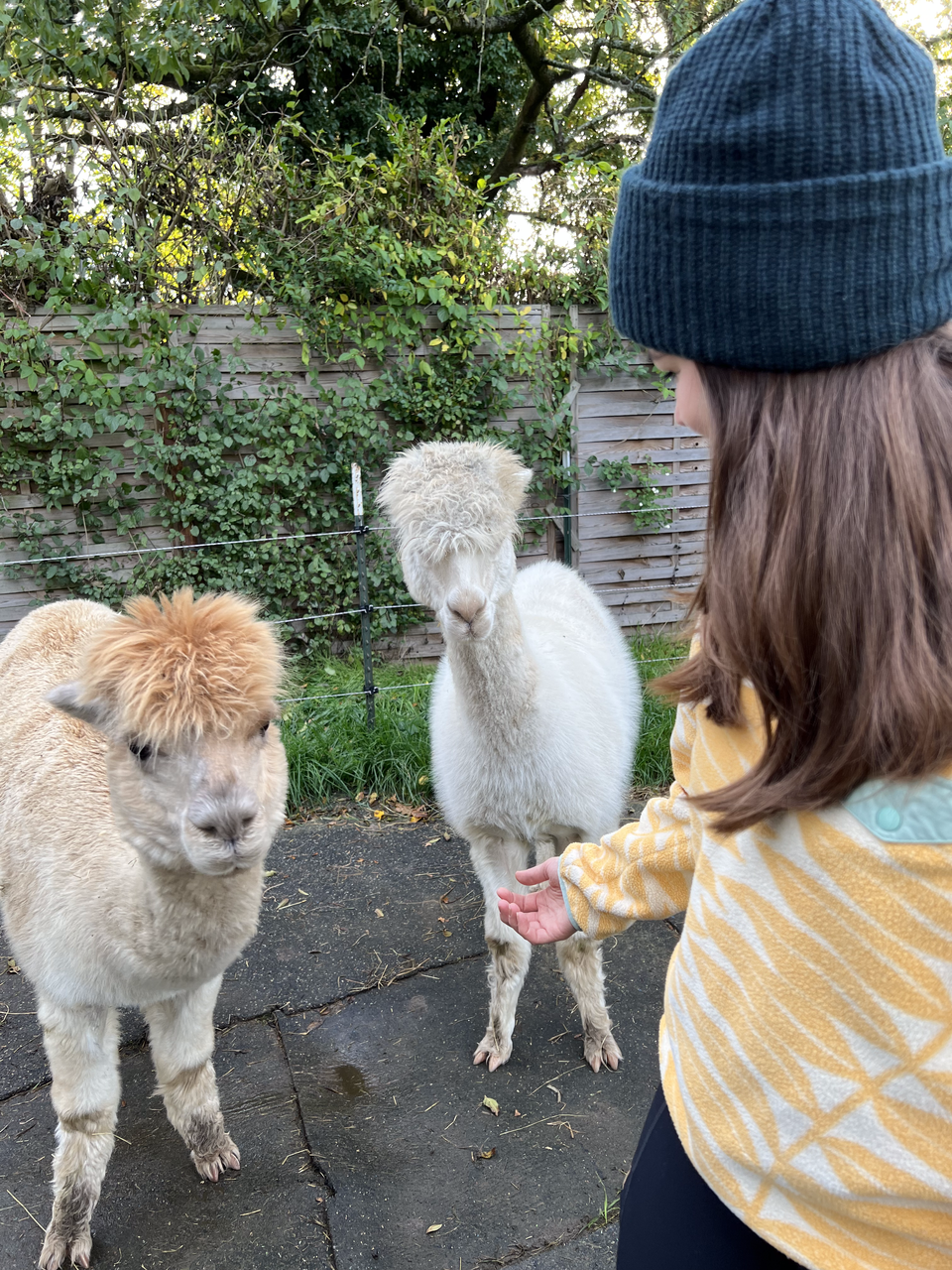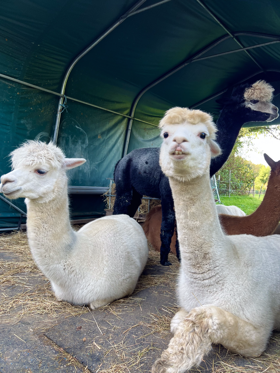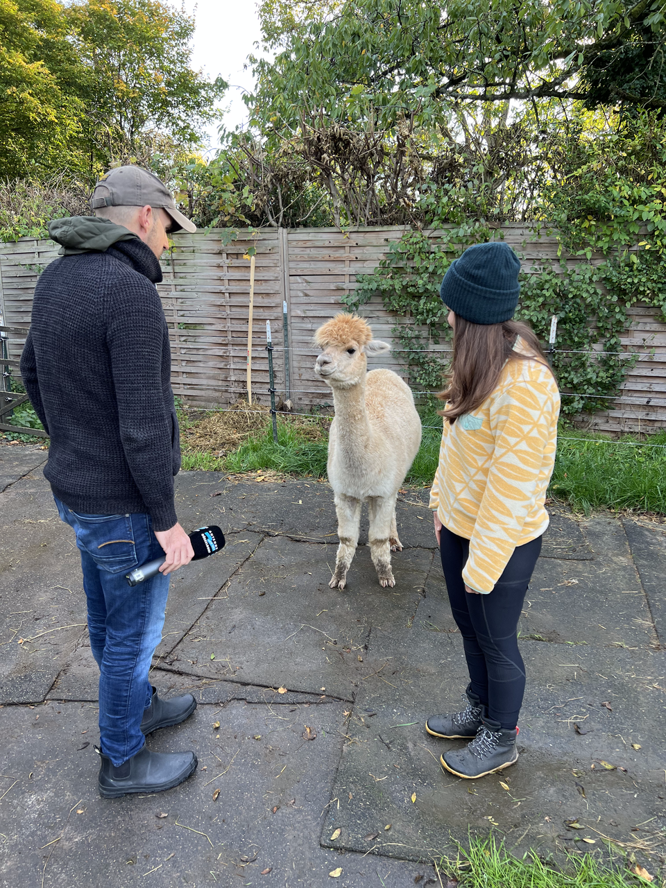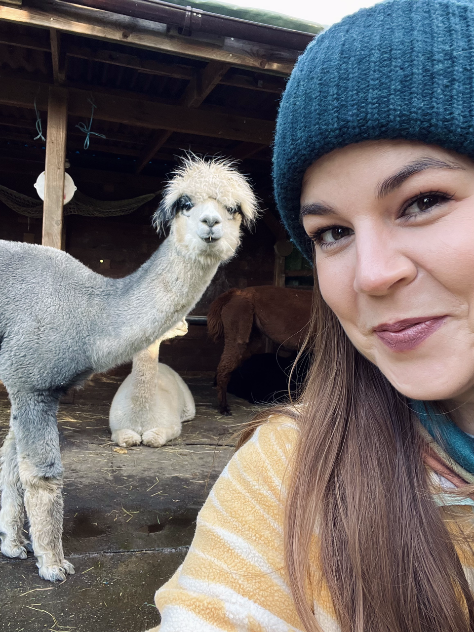 Alina: "Ich bin immer ziemlich kritisch, wenn es um Tierschutz und Ausbeutung von Tieren geht. Auch deshalb wollte ich die Rheinland-Alpakas und Michaela und Detlef Maluche kennenlernen. Wie im Interview zu hören, haben Dennis und ich auch kritische Nachfragen zur Haltung der Alpakas gestellt. So wie ich Michaela und Detlef kennengelernt habe und ihre Antworten einschätze, liegen ihnen ihre 14 Alpakas sehr am Herzen. Die Tiere wirkten ausgeglichen und wir haben ihnen einfach ihren Raum gelassen und abgewartet. Dennoch gilt es meiner Meinung nach immer zu betonen, dass Alpakas keine Kuscheltiere sind und auch, dass sie eigentlich sehr gemütlich unterwegs sind und Wanderungen mit Menschen nicht unbedingt ihre Lieblingsbeschäftigungen sind. Dessen sollte man sich bewusst sein".